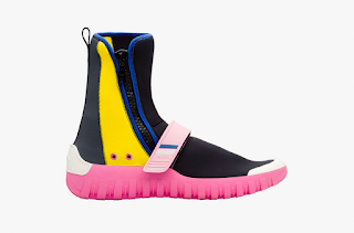 From Prada for Spring/Summer 2017 comes a hyper bright Scuba style set of footwear. In hi and low versions, with rubber soles, neoprene bodies, and velcro straps and zips, there are two low versions and one hi, with a cute floral number chucked in for good measure.